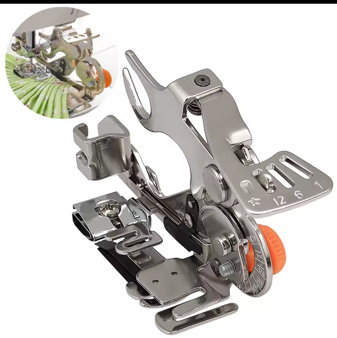 اجعلي مشاريع الخياطة الخاصة بك أكثر إبداعاً واحترافية! هذه الدواسة هي الأداة المثالية لعمل الكشكشة والكسرات المنتظمة بدقة وسرعة فائقة دون عناء يدوي.